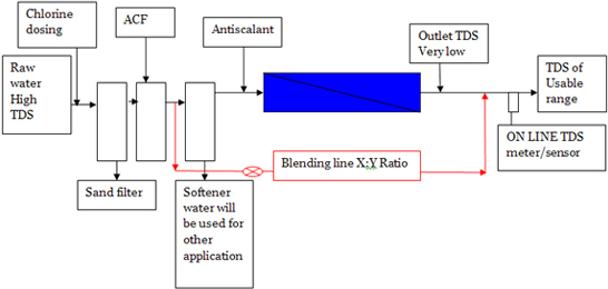 Blending line reduces the unnecessary power cost for producing desired quality of water if the outlet quality of the water is very low in TDS.